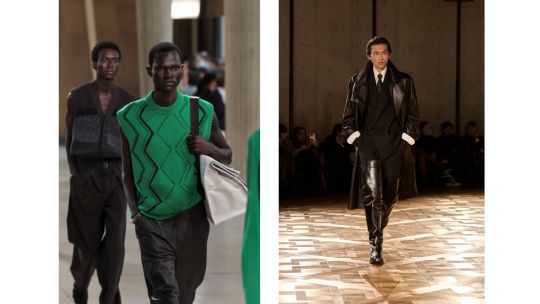 For 2026, expect menswear to lean further into this blend of structure and softness. Tailored leather trousers will show up in deep tones and earthy neutrals. Jackets will go cropped, double-breasted or collarless. Textures will range from matte to glazed, with minimal hardware and cleaner silhouettes. The focus is on form, feel and fit.