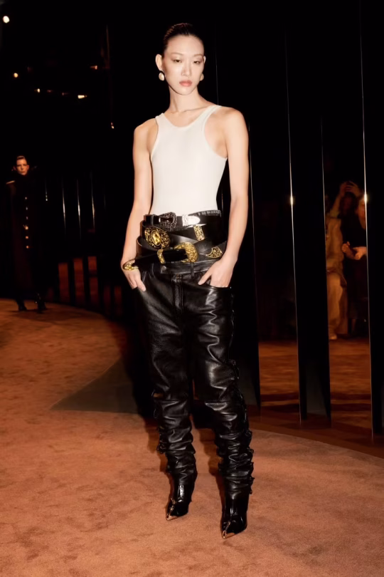 The humble leather belt is kind of a big deal this season – with outfit-changing styles studded throughout the collections. Notably, they were layered up en masse at Schiaparelli, oversized at Gucci and knotted at Louis Vuitton. And while the peplum belt made a return at Givenchy, chunky hip-huggers were seen on a number of models at Chloé, too.