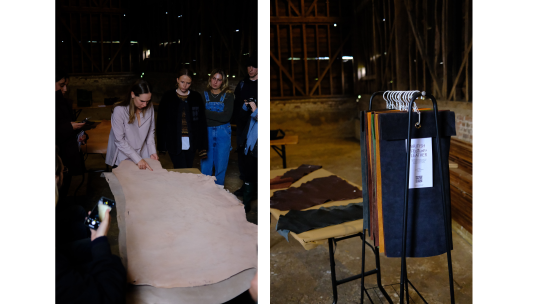 In the afternoon, Alice Robinson took us through British Pasture Leather’s process. Hides are recovered from animals processed in local abattoirs—true by-products of responsible meat production—and transformed using organic vegetable tanning.