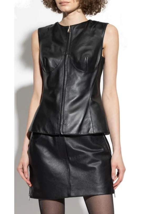 This is the most directional leather piece of the summer, and for good reason. A fitted leather vest worn as a standalone top, tucked into wide-leg trousers, or left loose over a micro skirt, is luxuriously minimal in a way that few other garments can manage.