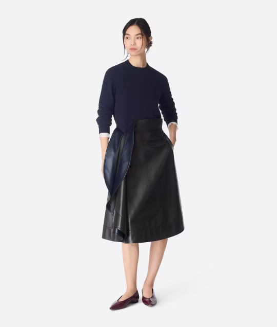 If there is one piece that defines leather for Summer 2026, it is the midi skirt. Seen everywhere from the runways to the streets, the leather midi is doing the hard work this season. Find a good one and you’ll have enough coverage to feel refined and enough movement to feel truly summery.